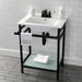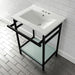 Kingston Sona VPB24187W40 - Sheridan 24-Inch Ceramic Console Sink with Stainless Steel Legs and Glass Shelf (4-Inch, 3-Hole), White/Matte Black