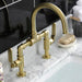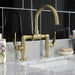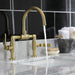 Kingston Sona KS2177KL - Whitaker Two-Handle 2-Hole Deck Mount Bridge Bathroom Faucet with Push Pop-Up Drain, Brushed Brass