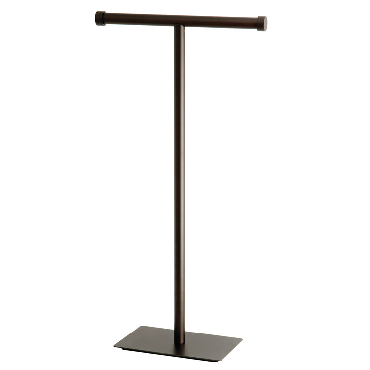 The Claremont T-shaped freestanding toilet paper holder gives the bathroom a contemporary touch. This discounted fundamental bathroom necessity boasts the ability to hold an extra toilet paper roll for added convenience. Additionally, its weighted base provides ease of use as it avoids tipping and falling.