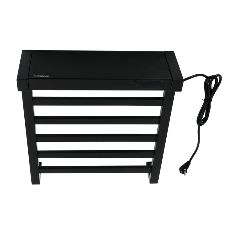 Upgrade your bathroom experience with the sleek, wall-mounted towel warmer from the Markus Collection by Kingston Brass. Designed to blend seamlessly with your bathroom décor, this stylish piece combines form and function, keeping your towels warm and dry for those refreshing morning showers. At less than 18 wide, it fits effortlessly into any space, making it a perfect addition to even the coziest bathrooms. Despite its compact design, it offers over 75 of towel-hanging space, ensuring plenty of room for all your needs. Plus, the included 15 glass shelf adds a touch of elegance and practicality. This plug-in model is a breeze to installno electrician requiredsaving you both time and money. Transform your bathroom into a spa-like retreat with this must-have accessory!