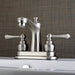 Kingston Tulare FB7628BL - Vintage Double-Handle 3-Hole Deck Mount 4-Inch Centerset Bathroom Faucet with Pop-Up Drain, Brushed Nickel