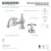 The exquisite design of this faucet tastefully flatters the elegant architecture of traditional homes with its fine detailing. Ideal for more spacious bathrooms, widespread faucets are more spread apart and feature a 3-hole installation. The Kingston Brass 8" Widespread Bathroom Faucet, with its featured sturdy brass construction and premium polished chrome finish, are guaranteed to glamorize your home's traditional ensemble for years to come. A matching finish drain is also included.