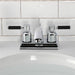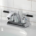 This faucet tastefully interweaves top-notch ergonomic design and the sheen of contemporary simplicity with its black silicone rubber coated handles and cylindrical facets. Centerset bathroom faucets are ideal for smaller bathrooms and feature an easy 3-hole installation. The Kaiser 4-inch centerset bathroom faucet with retail pop-up and its featured sturdy brass construction and premium polished chrome finish are guaranteed to glamorize your home's modern ensemble for years to come. Furnish your home surrounding with the modern flair of this fixture. A matching finish drain is also included.