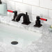 This faucet tastefully interweaves top-notch ergonomic design and the sheen of contemporary simplicity with its black silicone rubber coated handles and cylindrical facets. Ideal for more spacious bathrooms, widespread faucets are more spread apart and feature a 3-hole installation. The Kaiser 8" Widespread Bathroom Faucet, with its featured sturdy brass construction and premium oil rubbed bronze finish, are guaranteed to glamorize your home's modern ensemble for years to come. Furnish your home surrounding with the modern flair of this fixture. A matching finish drain is also included.