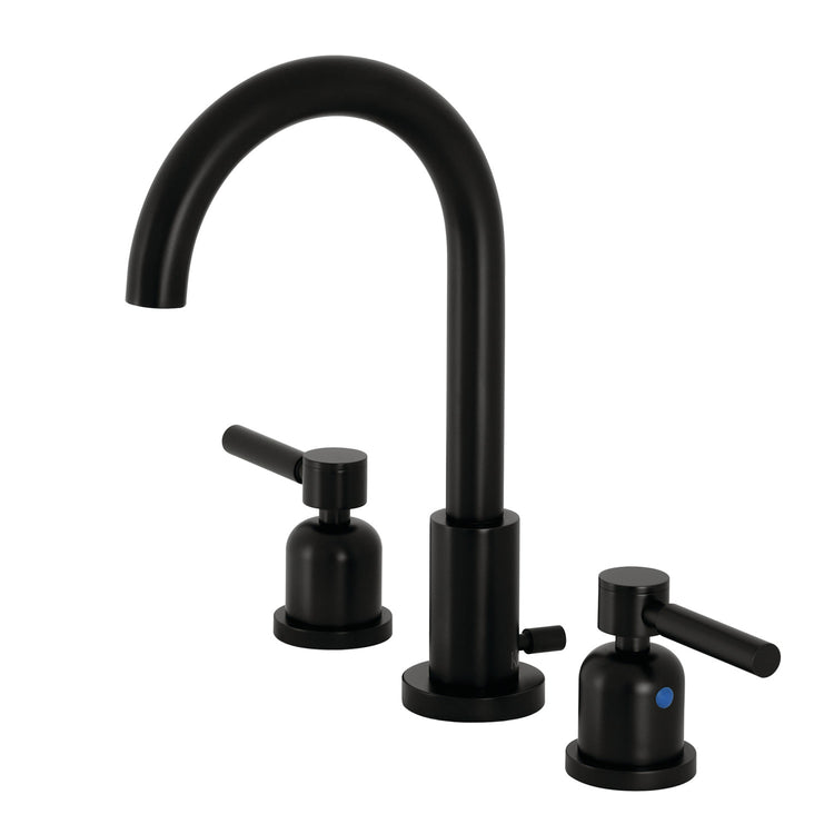 This faucet boasts bold, sleek design with its cylindrical styling. Ideal for more spacious bathrooms, widespread faucets are more spread apart and feature a 3-hole installation. The Concord 8 in. widespread bathroom faucet with brass pop-up and its featured sturdy brass construction and premium matte black finish are guaranteed to glamorize your home's modern ensemble for years to come. Flash the radical brilliance of contemporary trends with this statement piece. A matching finish drain is also included.
