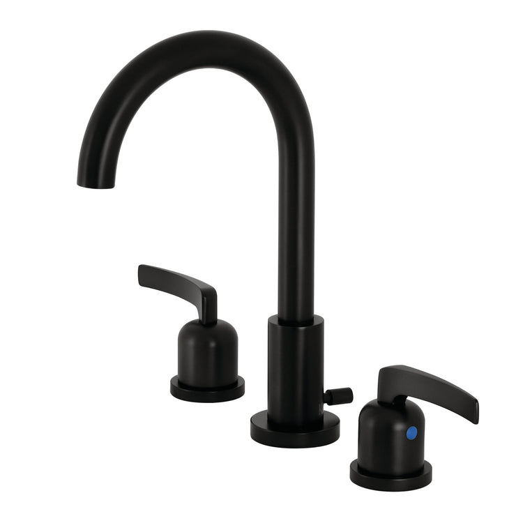 The innovative, sleek design of this faucet will enhance contemporary decor Ideal for more spacious bathrooms, widespread faucets are more spread apart and feature a 3-hole installation. The Centurion 8 in. widespread bathroom faucet with brass pop-up and its featured sturdy brass construction and premium matte black finish are guaranteed to glamorize your home's modern ensemble for years to come. Upgrade your contemporary home into a place of elite sophistication with this faucet. A matching finish drain is also included.