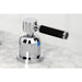 This faucet tastefully interweaves top-notch ergonomic design and the sheen of contemporary simplicity with its black silicone rubber coated handles and cylindrical facets. Ideal for more spacious bathrooms, widespread faucets are more spread apart and feature a 3-hole installation. The Kaiser widespread bathroom faucet with brass pop-up and its featured sturdy brass construction and premium polished chrome finish are guaranteed to glamorize your home's modern ensemble for years to come. Furnish your home surrounding with the modern flair of this fixture. A matching finish drain is also included.