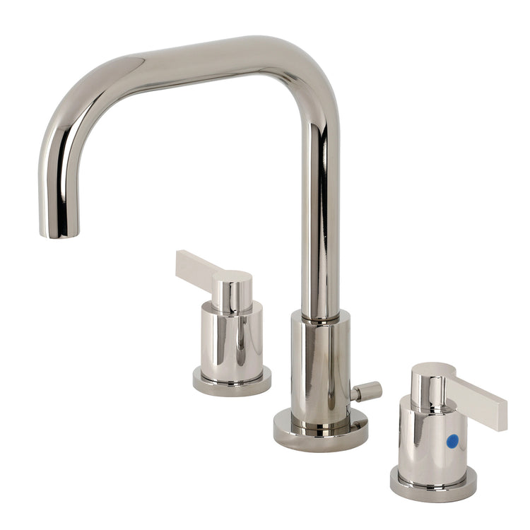 The chic fashion of this faucet is distinguished by its expressive artistry and flat, ergonomic levers. Ideal for more spacious bathrooms, widespread faucets are more spread apart and feature a 3-hole installation. The NuvoFusion widespread bathroom faucet with brass pop-up and its featured sturdy brass construction and premium polished nickel finish are guaranteed to glamorize your home's modern ensemble for years to come. Revive the obsolete with the illustrious prestige of this fixture. A matching finish drain is also included.