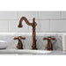 Kingston Heirloom KB197AXAC - Heritage Two-Handle 3-Hole Deck Mount Widespread Bathroom Faucet with Brass Pop-Up, Antique Copper