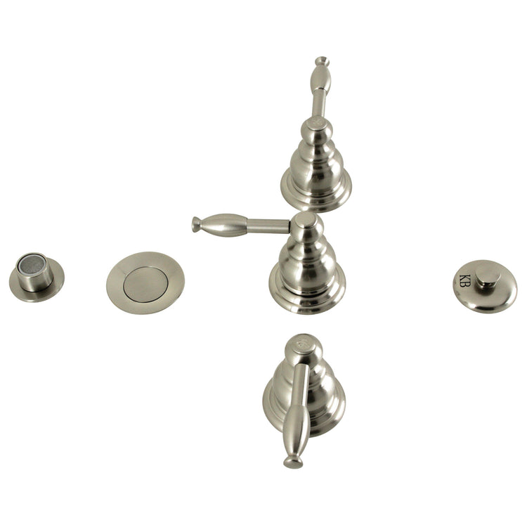 Kingston Heirloom KB328KL - Knight Three-Handle Deck Mount Vertical Spray Bidet Faucet with Brass Pop-Up, Brushed Nickel