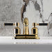 This faucet tastefully interweaves top-notch ergonomic design and the sheen of contemporary simplicity with its black silicone rubber coated handles and cylindrical facets. Centerset bathroom faucets are ideal for smaller bathrooms and feature an easy 3-hole installation. The Kaiser 4-inch centerset bathroom faucet with pop-up drain and its featured sturdy brass construction and premium polished brass finish are guaranteed to glamorize your home's modern ensemble for years to come. Furnish your home surrounding with the modern flair of this fixture. A matching finish drain is also included.