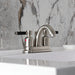 This faucet tastefully interweaves top-notch ergonomic design and the sheen of contemporary simplicity with its black silicone rubber coated handles and cylindrical facets. Centerset bathroom faucets are ideal for smaller bathrooms and feature an easy 3-hole installation. The Kaiser 4-inch centerset bathroom faucet with retail pop-up and its featured sturdy brass construction and premium brushed nickel finish are guaranteed to glamorize your home's modern ensemble for years to come. Furnish your home surrounding with the modern flair of this fixture. A matching finish drain is also included.