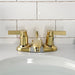 The chic fashion of this faucet is distinguished by its expressive artistry and flat, ergonomic levers. Centerset bathroom faucets are ideal for smaller bathrooms and feature an easy 3-hole installation. The NuvoFusion 4-inch centerset bathroom faucet with retail pop-up and its featured sturdy brass construction and premium polished brass finish are guaranteed to glamorize your home's modern ensemble for years to come. Revive the obsolete with the illustrious prestige of this fixture. A matching finish drain is also included.