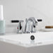This faucet tastefully interweaves top-notch ergonomic design and the sheen of contemporary simplicity with its black silicone rubber coated handles and cylindrical facets. The Kaiser widespread bathroom faucets with its featured sturdy brass construction and premium polished brass finish are guaranteed to glamorize your home's modern ensemble for years to come. Ideal for more spacious bathrooms, widespread faucets feature a 3-hole installation at 8" center to center. Furnish your home surrounding with the modern flair of this fixture. A matching finish drain is also included.