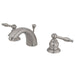 Kingston Tulare KB958KL - Knight Two-Handle 3-Hole Deck Mount Mini-Widespread Bathroom Faucet with Pop-Up Drain, Brushed Nickel