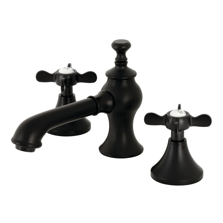 Kingston Tulare KC7060BEX - Essex Two-Handle 3-Hole Deck Mount Widespread Bathroom Faucet with Brass Pop-Up, Matte Black