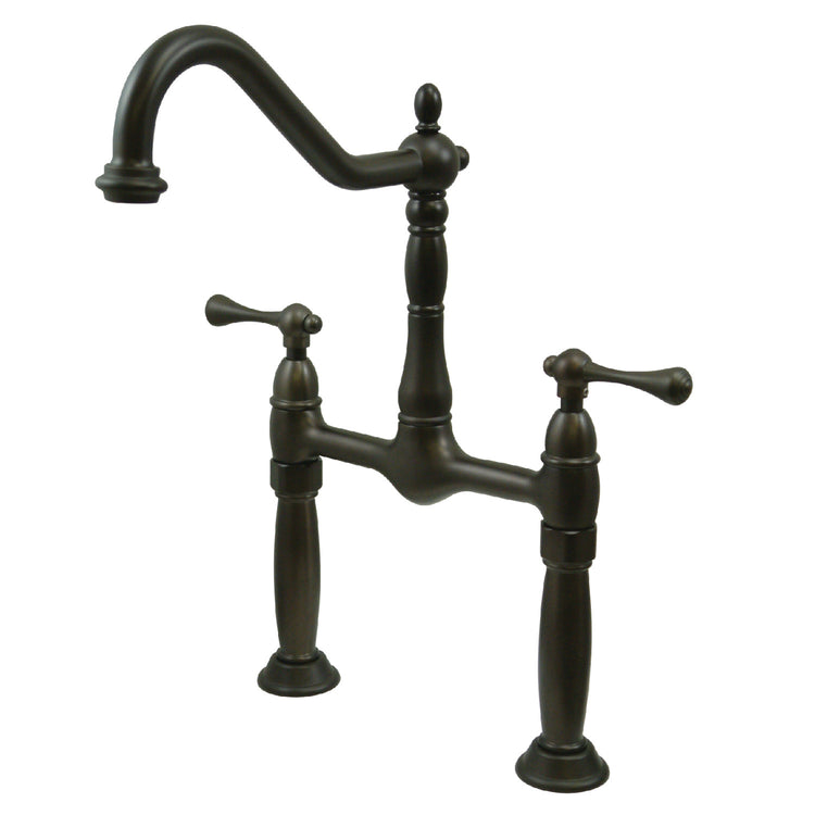 Kingston Victorian KS1075BL Two-Handle 2-Hole Deck Mount Bridge Vessel Faucet, Oil Rubbed Bronze