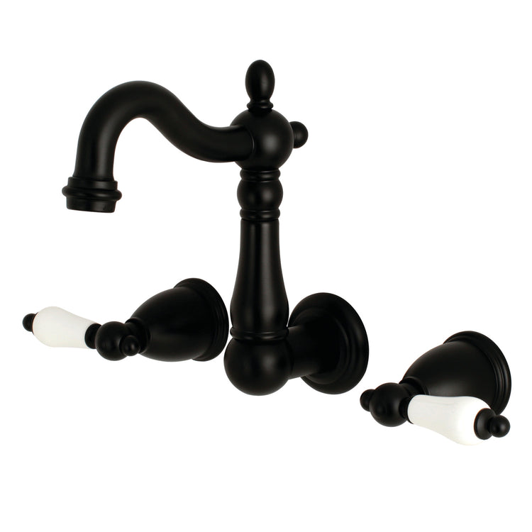 Kingston Heirloom KS1220PL - Heritage Double-Handle 3-Hole Wall Mount Bathroom Faucet, Matte Black