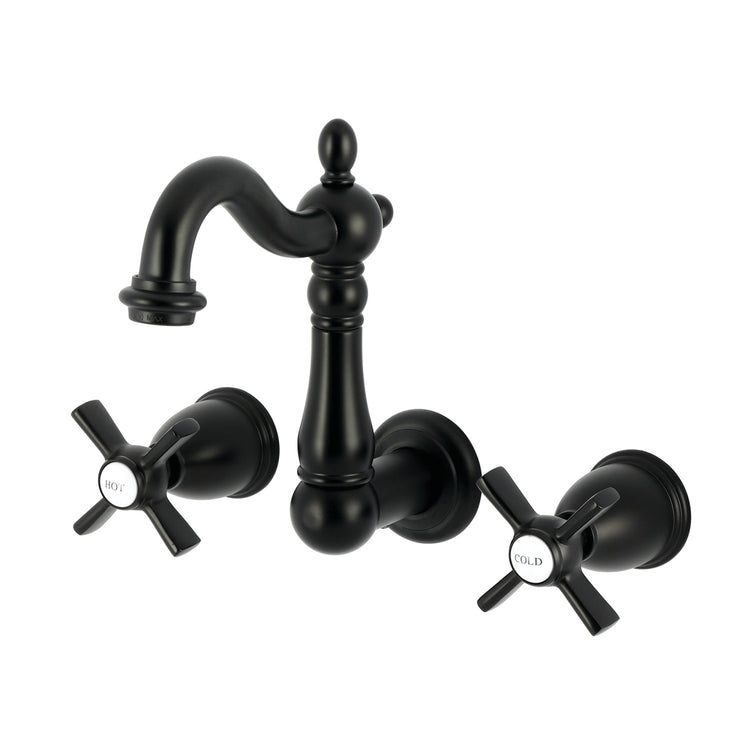 Kingston Heirloom KS1220ZX - Millennium Double-Handle 3-Hole Wall Mount Bathroom Faucet, Matte Black