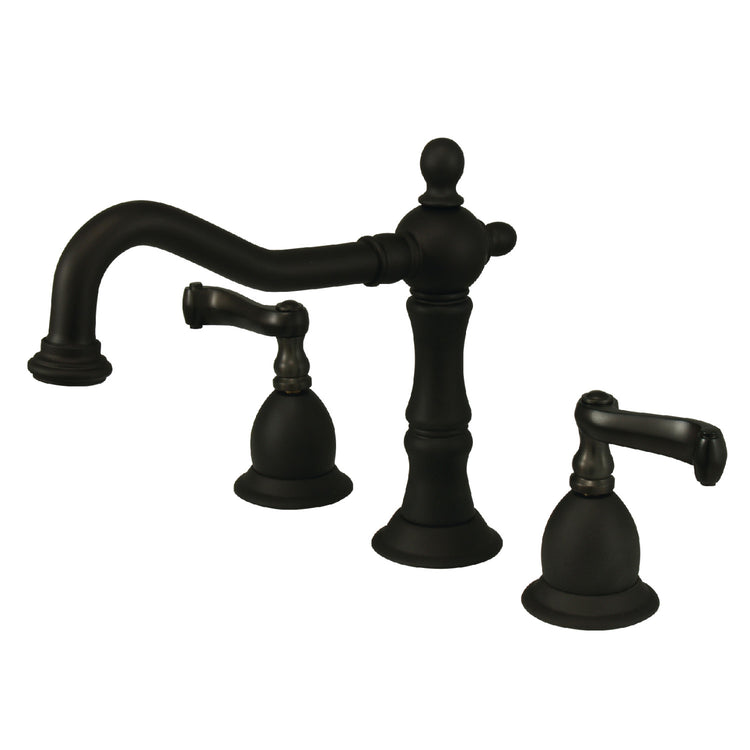 Kingston Heirloom KS1975FL - Heritage Two-Handle 3-Hole Deck Mount Widespread Bathroom Faucet with Brass Pop-Up, Oil Rubbed Bronze
