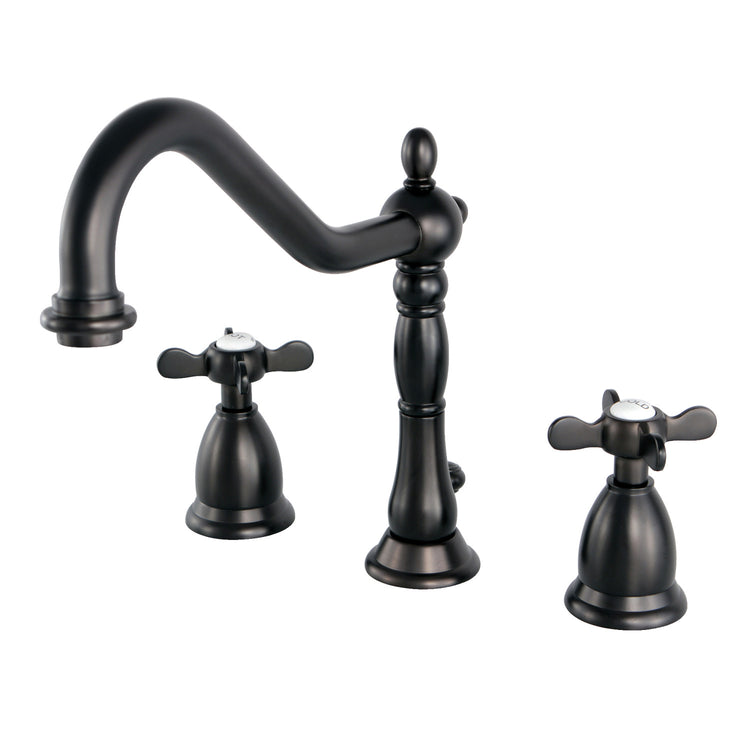Kingston Heirloom KS1995BEX - Essex Two-Handle 3-Hole Deck Mount Widespread Bathroom Faucet with Brass Pop-Up, Oil Rubbed Bronze