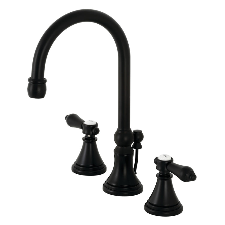 Kingston Tulare KS2980BAL - Heirloom Two-Handle 3-Hole Deck Mount Widespread Bathroom Faucet with Brass Pop-Up, Matte Black
