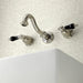 Crafted in commendations to English nobility, the exemplary design of this faucet manifests regality and elegance with its black porcelain handles. Attached to the wall behind your sink, the horizontal pop adds a stunning element to your bathroom design. Clean-up is also made a breeze as counter space is cleared up. The Duchess wall mount bathroom faucet and its featured sturdy brass construction and premium polished nickel finish are guaranteed to glamorize your home's traditional ensemble for years to come. Glamorize your home today with the traditional elegance of this faucet.