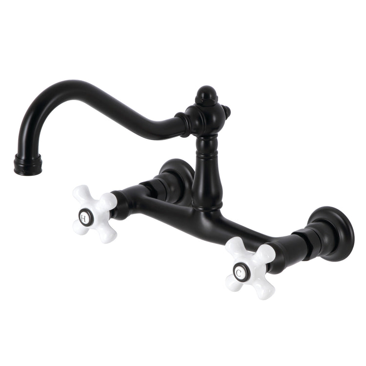 Kingston Heirloom KS3240PX - Vintage Double-Handle 2-Hole Wall Mount Bathroom Faucet, Matte Black