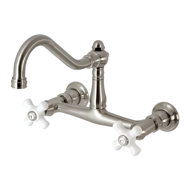 Kingston Heirloom KS3248PX - Vintage Double-Handle 2-Hole Wall Mount Bathroom Faucet, Brushed Nickel