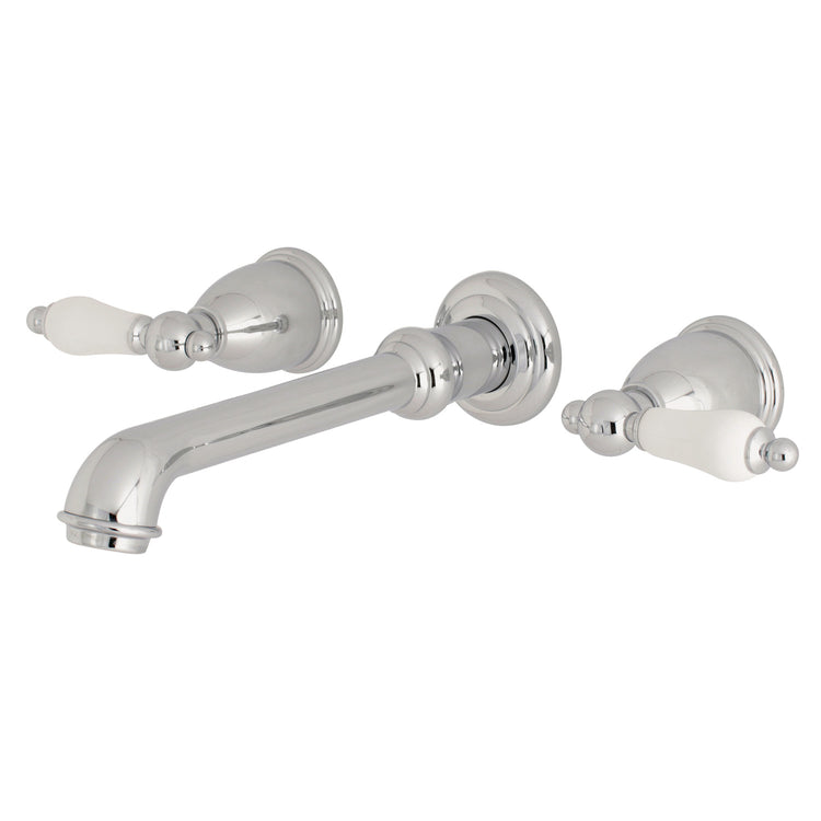 Kingston Tulare KS7121PL - English Country Double-Handle 3-Hole Wall Mount Bathroom Faucet, Polished Chrome