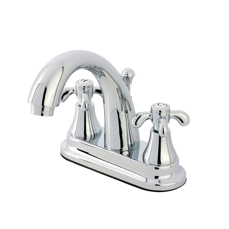 The dainty detailing of this faucet provides the delicacy of European antiquity along with top-of-the-line craftsmanship. Centerset bathroom faucets are ideal for smaller bathrooms and feature an easy 3-hole installation. The French Country 4-inch centerset bathroom faucet with brass pop-up and its featured sturdy brass construction and premium polished chrome finish are guaranteed to glamorize your home's traditional ensemble for years to come. Revel in the euphoria of the countryside by adorning your traditional household with this fixture. A matching finish drain is also included.