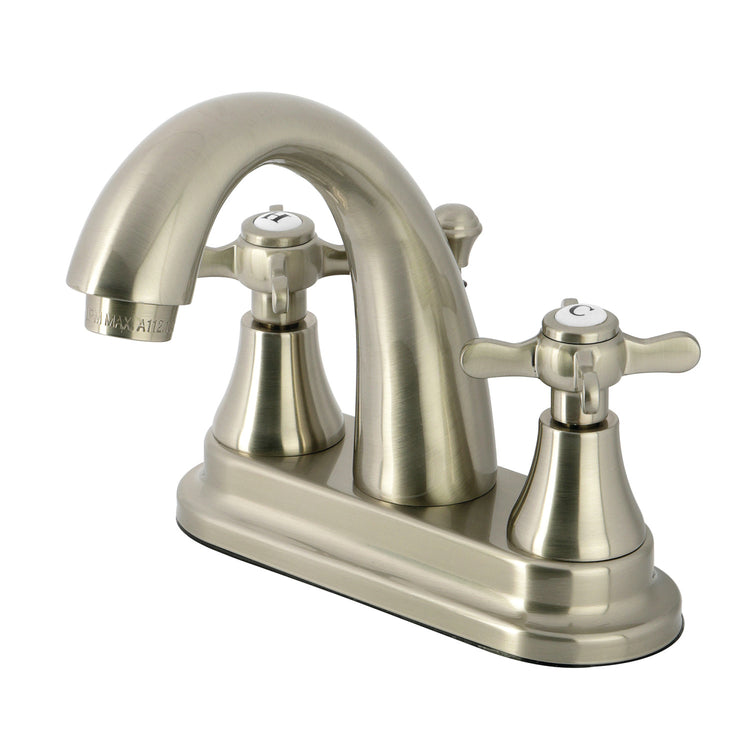 Kingston Tulare KS7618BEX - Essex Double-Handle 3-Hole Deck Mount 4-Inch Centerset Bathroom Faucet with Brass Pop-Up, Brushed Nickel