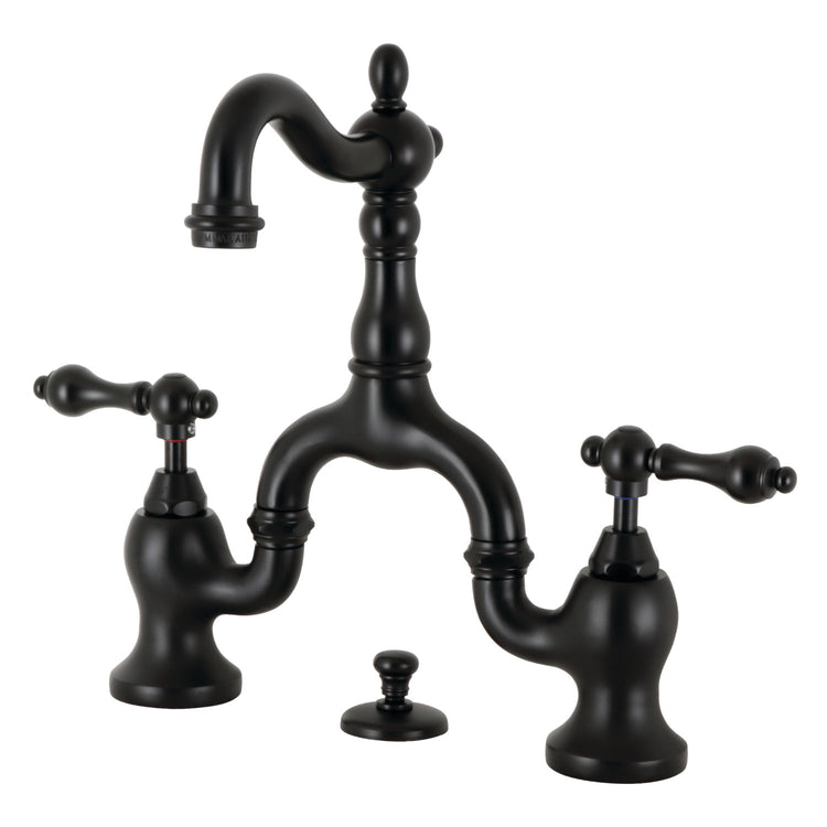 Kingston Heirloom KS7970AL - English Country Two-Handle 3-Hole Deck Mount Bridge Bathroom Faucet with Brass Pop-Up, Matte Black