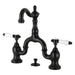 Kingston Heirloom KS7970BPL - Bel-Air Two-Handle 3-Hole Deck Mount Bridge Bathroom Faucet with Brass Pop-Up, Matte Black