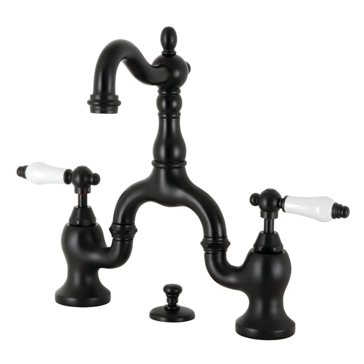 Kingston Heirloom KS7970PL - English Country Two-Handle 3-Hole Deck Mount Bridge Bathroom Faucet with Brass Pop-Up, Matte Black