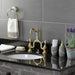 Kingston Heirloom KS7977TX - French Country Two-Handle 3-Hole Deck Mount Bridge Bathroom Faucet with Brass Pop-Up, Brushed Brass