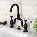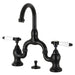 Kingston Heirloom KS7990BPL - Bel-Air Two-Handle 3-Hole Deck Mount Bridge Bathroom Faucet with Brass Pop-Up, Matte Black
