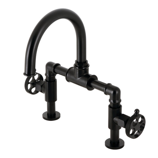 Kingston BrassKingston Sona KS2170RKX - Webb Two-Handle 2-Hole Deck Mount Bridge Bathroom Faucet with Knurled Handle and Push Pop-Up Drain, Matte Black The ex...