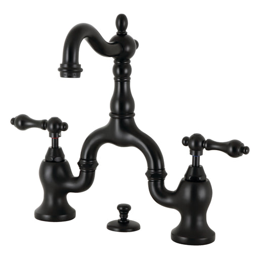 Original price $1,104.95 - Original price $1,104.95Original price $1,104.95$1,104.95$1,104.95 - $1,104.95Current price $1,104.95| /Kingston Heirloom KS7970AL - English Country Two-Handle 3-Hole Deck Mount Bridge Bathroom Faucet with Brass Pop-Up, Matte Black