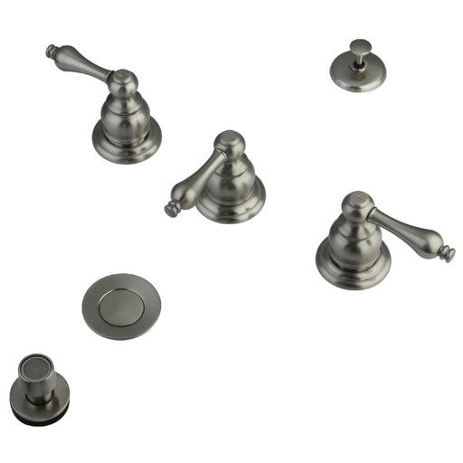 Original price $374.95 - Original price $374.95Original price $374.95$374.95$374.95 - $374.95Current price $374.95| /Kingston Heirloom KB308 - Victorian Three-Handle Deck Mount Bidet Faucet with Brass Pop-Up, Brushed Nickel