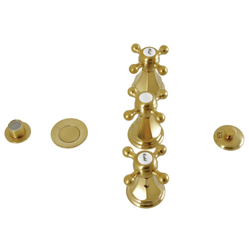 Kingston BrassKingston Tulare KB327LL - Legacy Three-Handle Deck Mount Bidet Faucet with Brass Pop-Up, Brushed Brass A twist on classic design is taken with t...