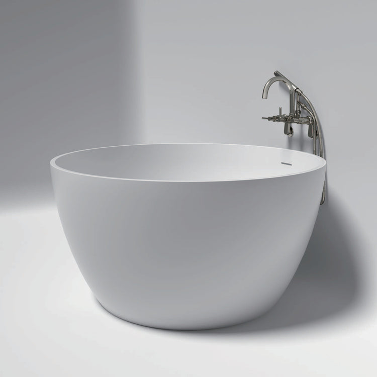 Kingston Arcticstone KRTRO4545156DL 45-Inch Solid Surface Round Double Ended Freestanding Tub with Faucet Combo and Drain, Polished Nickel
