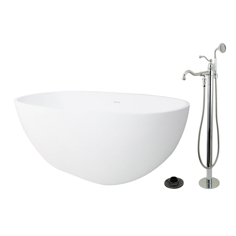 Kingston Tulare KRTRS6531131AL - Arcticstone 65-Inch Solid Surface Oval Double Ended Freestanding Tub with Faucet Combo and Drain, Polished Chrome