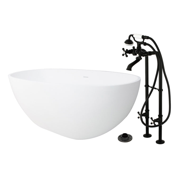 Kingston Tulare KRTRS6531266K0 - Arcticstone 65-Inch Solid Surface Oval Double Ended Freestanding Tub with Faucet Combo and Drain, Matte Black