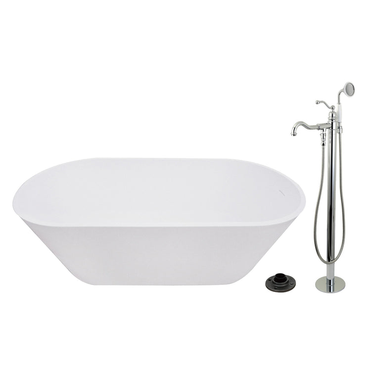 Kingston Tulare KRTRS6731131AL - Arcticstone 67-Inch Solid Surface Oval Double Ended Freestanding Tub with Faucet Combo and Drain, Polished Chrome
