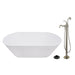 Kingston Tulare KRTRS6731138AL - Arcticstone 67-Inch Solid Surface Oval Double Ended Freestanding Tub with Faucet Combo and Drain, Brushed Nickel