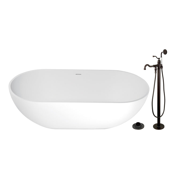 Kingston Tulare KRTRS7035135AL - Arcticstone 70-Inch Solid Surface Oval Double Ended Freestanding Tub with Faucet Combo and Drain, Oil Rubbed Bronze