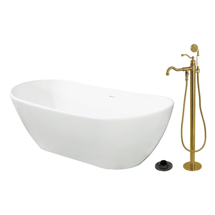 Kingston Tulare KRTRS7232137AL - Arcticstone 72-Inch Solid Surface Oval Double Ended Freestanding Tub with Faucet Combo and Drain, Brushed Brass