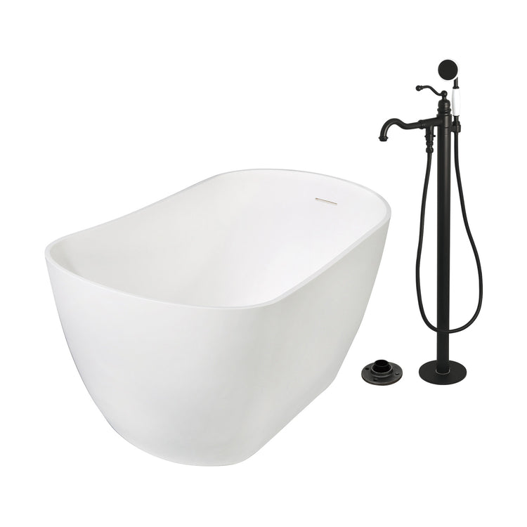 Kingston Tulare KRTSS5130130AL - Arcticstone 51-Inch Solid Surface Oval Single Slipper Freestanding Tub with Faucet Combo and Drain, Matte Black