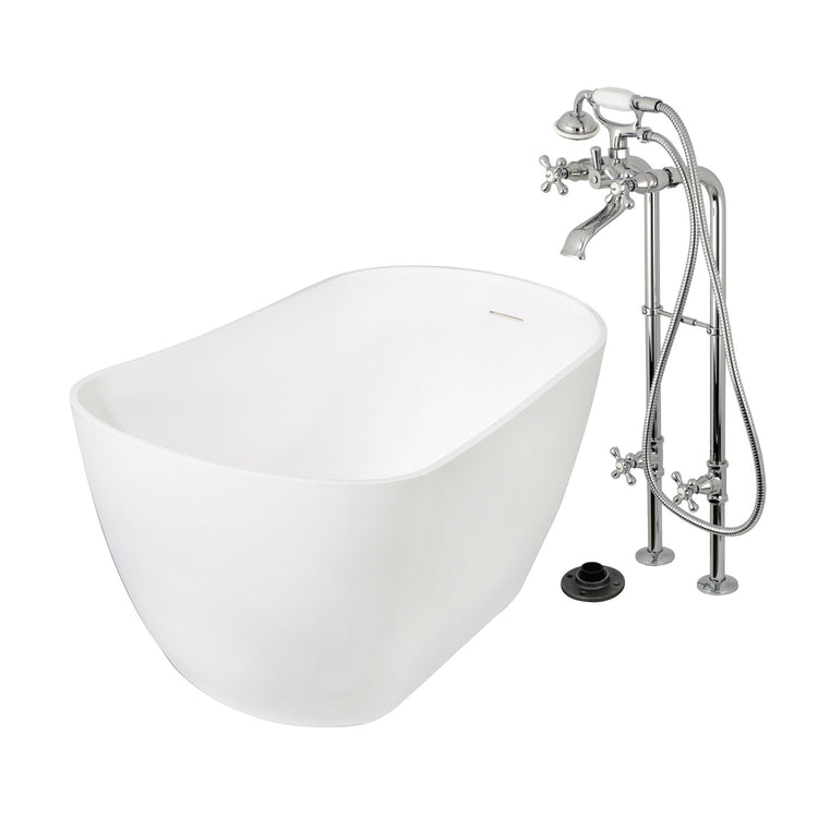 Kingston Tulare KRTSS5130266K1 - Arcticstone 51-Inch Solid Surface Oval Single Slipper Freestanding Tub with Faucet Combo and Drain, Polished Chrome